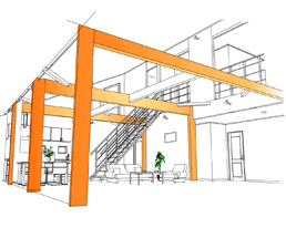 GUTT-FRAME工法は一階のみの1層フレーム、一・二階の2層フレーム、一・二・三階の3層フレームなど、プランに合わせて必要なところに必要な本数だけを使用することで、自由設計の夢を拡げます。