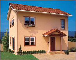 間取の制限をなくした室内は、空間を自由に利用することができます。やわらかな色合いの壁に、素焼きのスペイン瓦をあしらった異国情緒あふれる家は、住む人のこだわりが随所に生かせるデザインです。