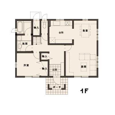 独立したダイニングは、家族そろっての食事を豊かにし、お客さまを招いたディナーシーンを演出します。はっきり区別したリビングは、落ちついた大人の空間を創り出し、大切なお客さまを招くのにふさわしいスペースです。