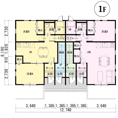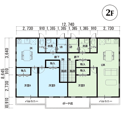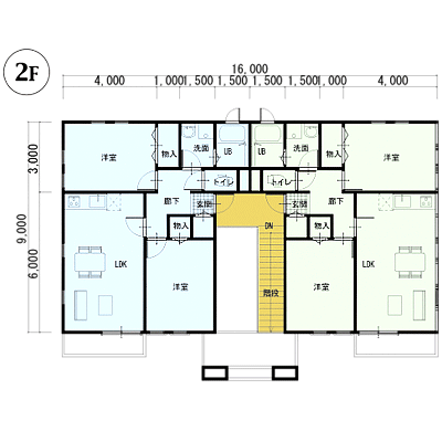 単世帯から新婚カップル、ファミリーまで幅広い層向けに、2DKと1LDKを組み合わせたプランです。2DKは新婚カップル向けに、1LDKは寝室+友人が集うリビングとして、ちょっと贅沢なシングル向けに。