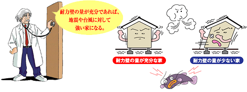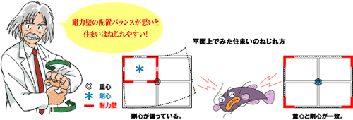 壁の量が多くても、配置が偏っていては、充分な効果が期待できません。そのため、耐力壁がバランスよく配置されているかをチェックします。