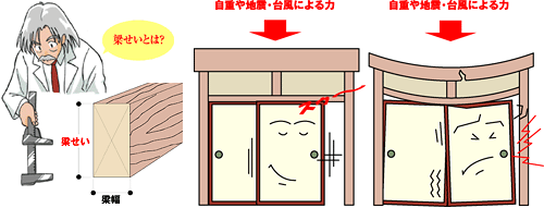 折れたり、大きくたわまない梁が配置されているかをチェックします。