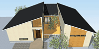 中庭をはさんで配置した片流れ屋根の外観。シャープな印象の中にも、おおらかな表情が漂います。