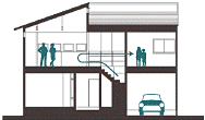 玄関から個室への通り道になり、家族のふれあいを重視。